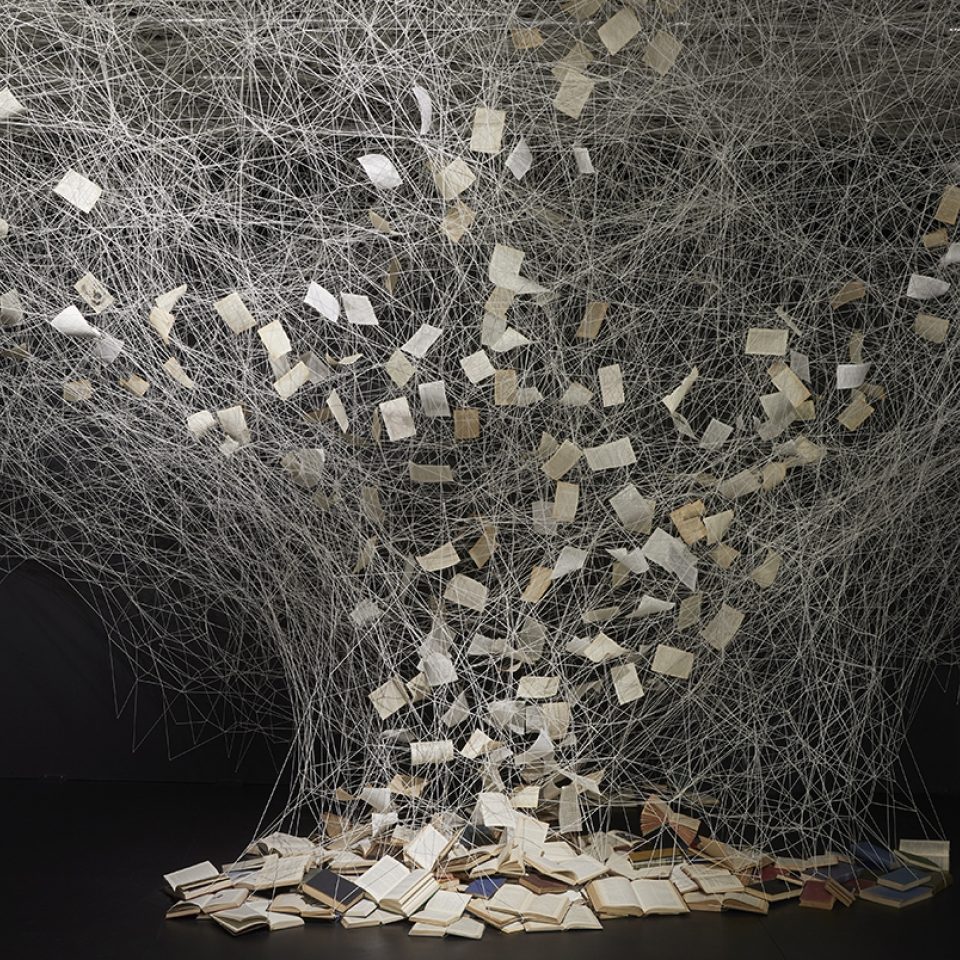 Chiharu Shiota is best known for intricate and large-scale installations that explore complex relationships between body and mind. She maps elusive sensations of emotion and memory by weaving tangible objects – clothing, musical instruments, furniture, letters, and even an incinerated piano – into extensive, tangled webs created with hundreds of metres of delicate thread. By capturing objects in this way, the artist creates atmospheric, otherworldly environments that inspire reflection on things past and meditation on future dreams.