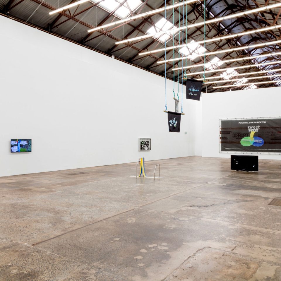 Anodised aluminium, digital print on perspex, screws, 55″ Samsung 3D Smart TV, remote control