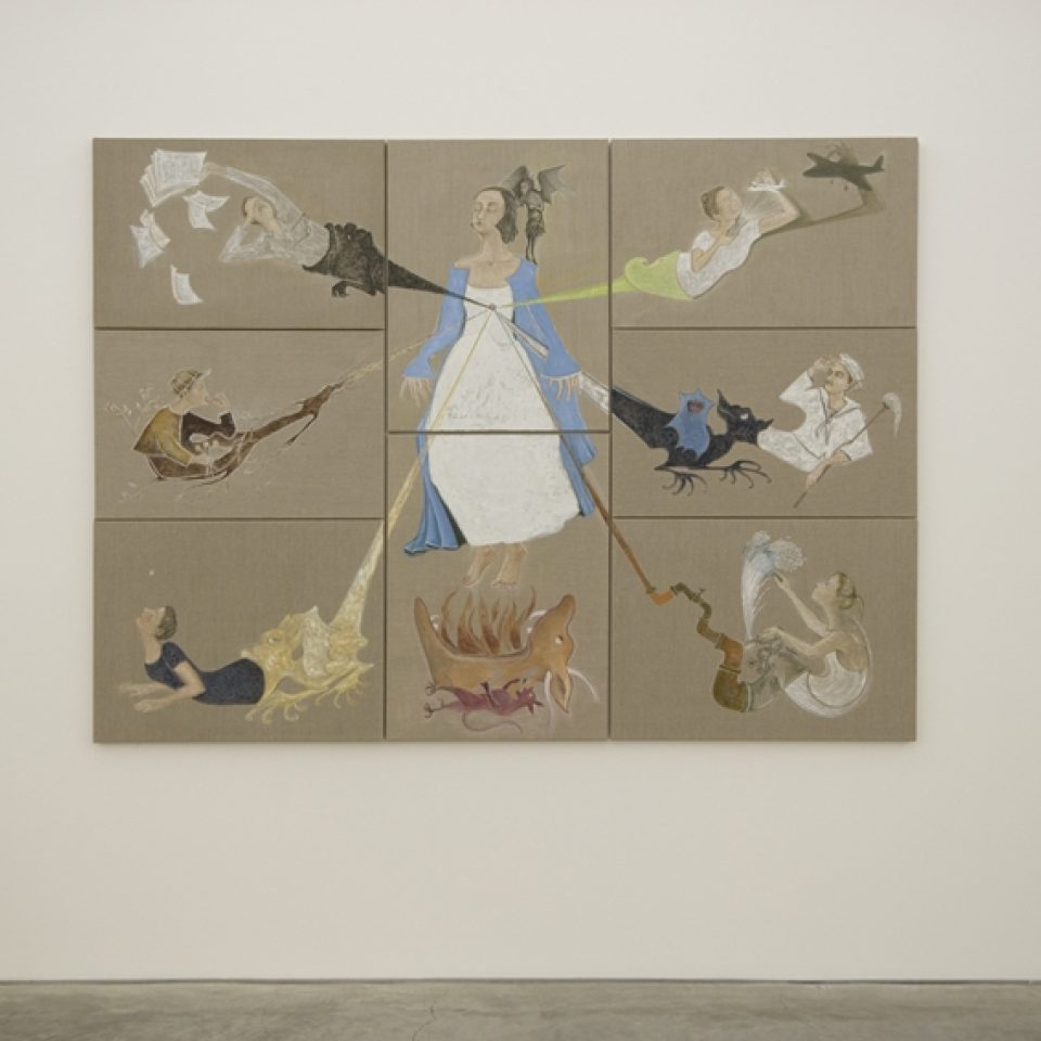 Vivienne Shark LeWitt is a painter whose witty and subversive artworks have been widely exhibited for over four decades. Drawing upon an idiosyncratic cache of artistic and literary references, her enigmatic paintings reconfigure influences, sources and traditions in ironic and surprising combinations, creating allegorical and ambiguous narratives that explore the peculiarity, complexity and absurdity of being human.