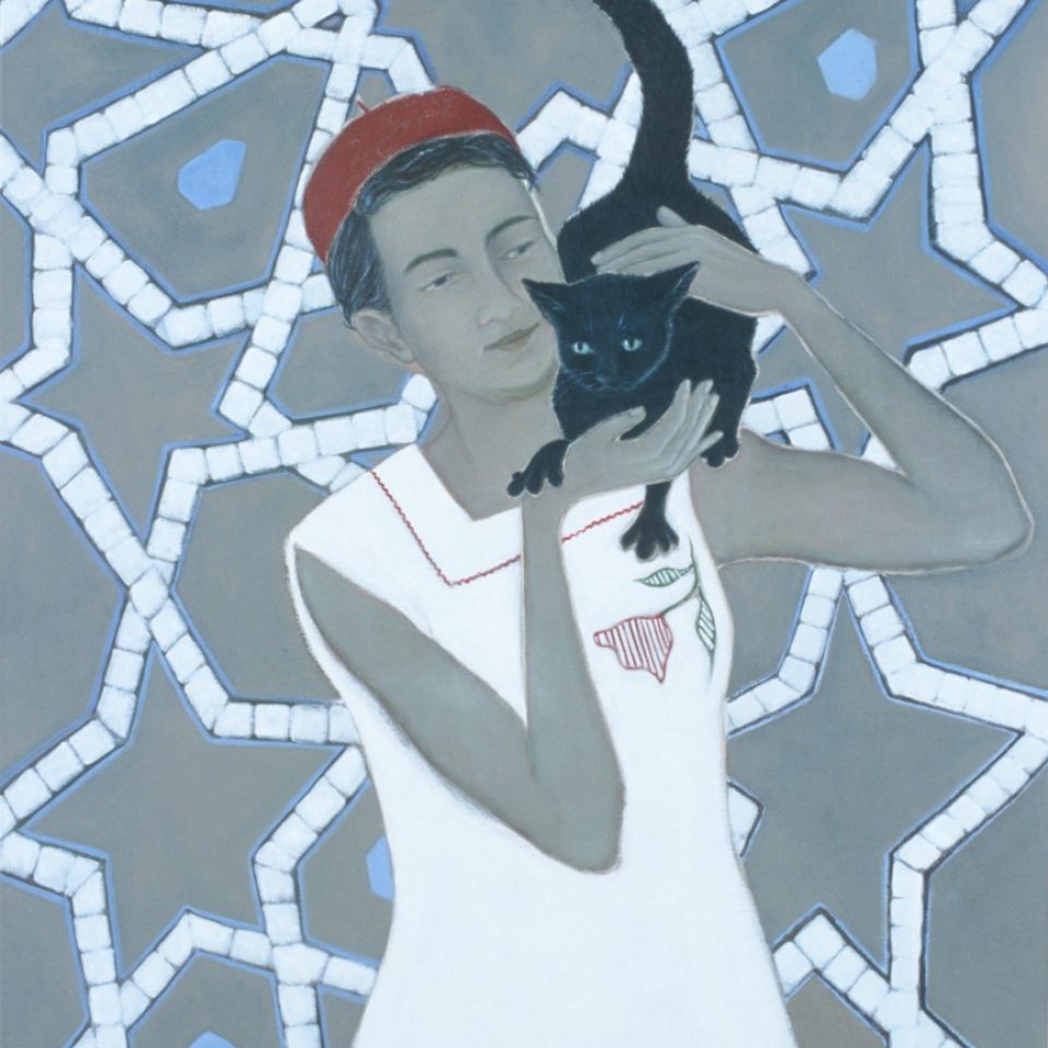 Through the 1990s Shark LeWitt’s paintings became more economical in notation — a linear definition of thinly attenuated figures, flat near-abstracted surfaces and subtle combinations of tonal colours — sketching out the nuances of feeling and susceptibilities between human and sometimes animal subjects. These paintings were reminiscent of the most elegant of John Brack’s figurative studies in their physiognomy and articulation of character.