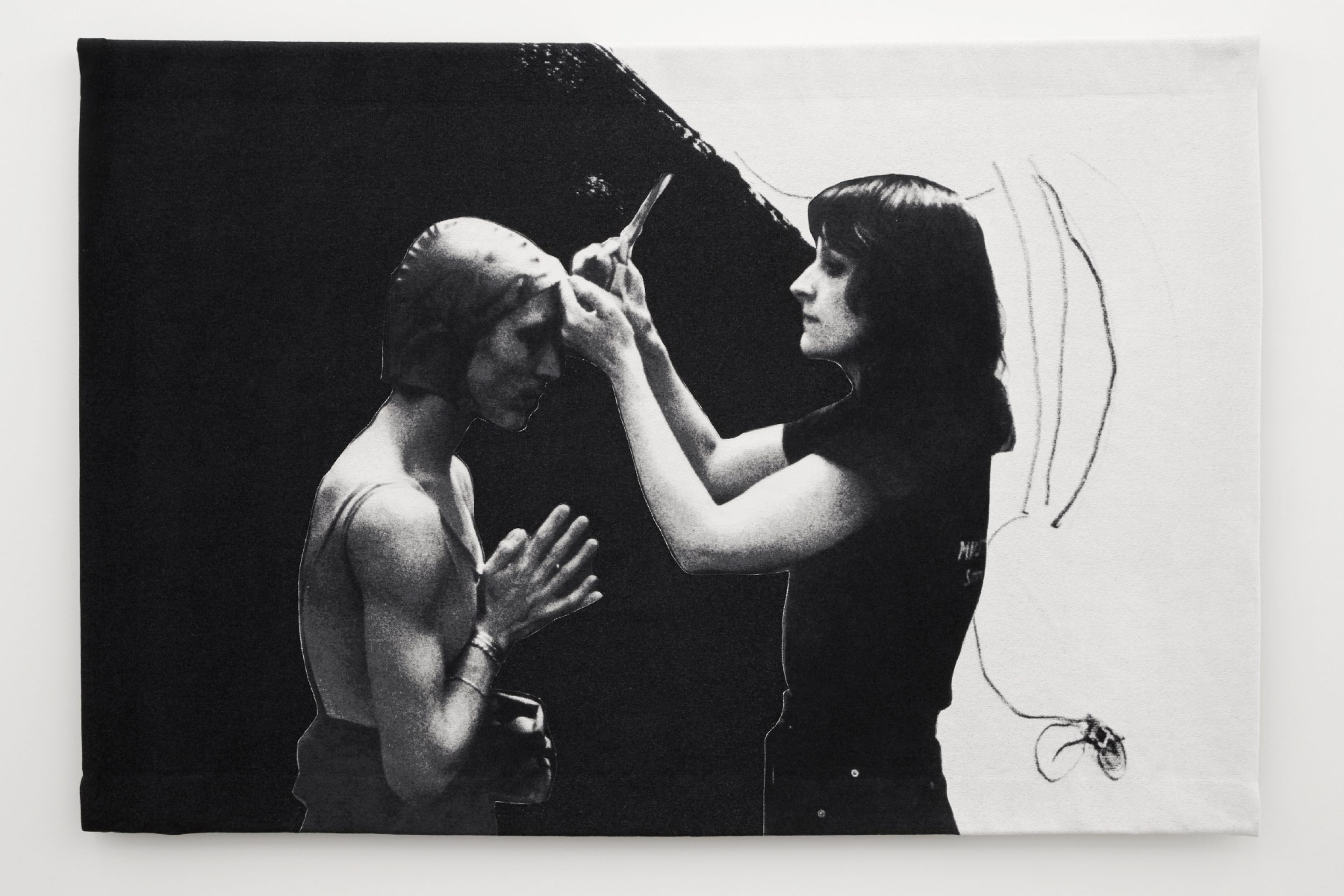 ‘‘The sort of palette I was looking for was like a photocopy, on this very cool grey scale,’’ he says. He never exhibits the original collages, even for the purposes of comparison. ‘‘I discard them. They’re a means to an end. Also it’s really to do with scale. The figures in the tapestry are life-size so that when you see them in the space, you have a bodily relationship to them, whereas the collages are about the size of an A4 sheet of paper.’’