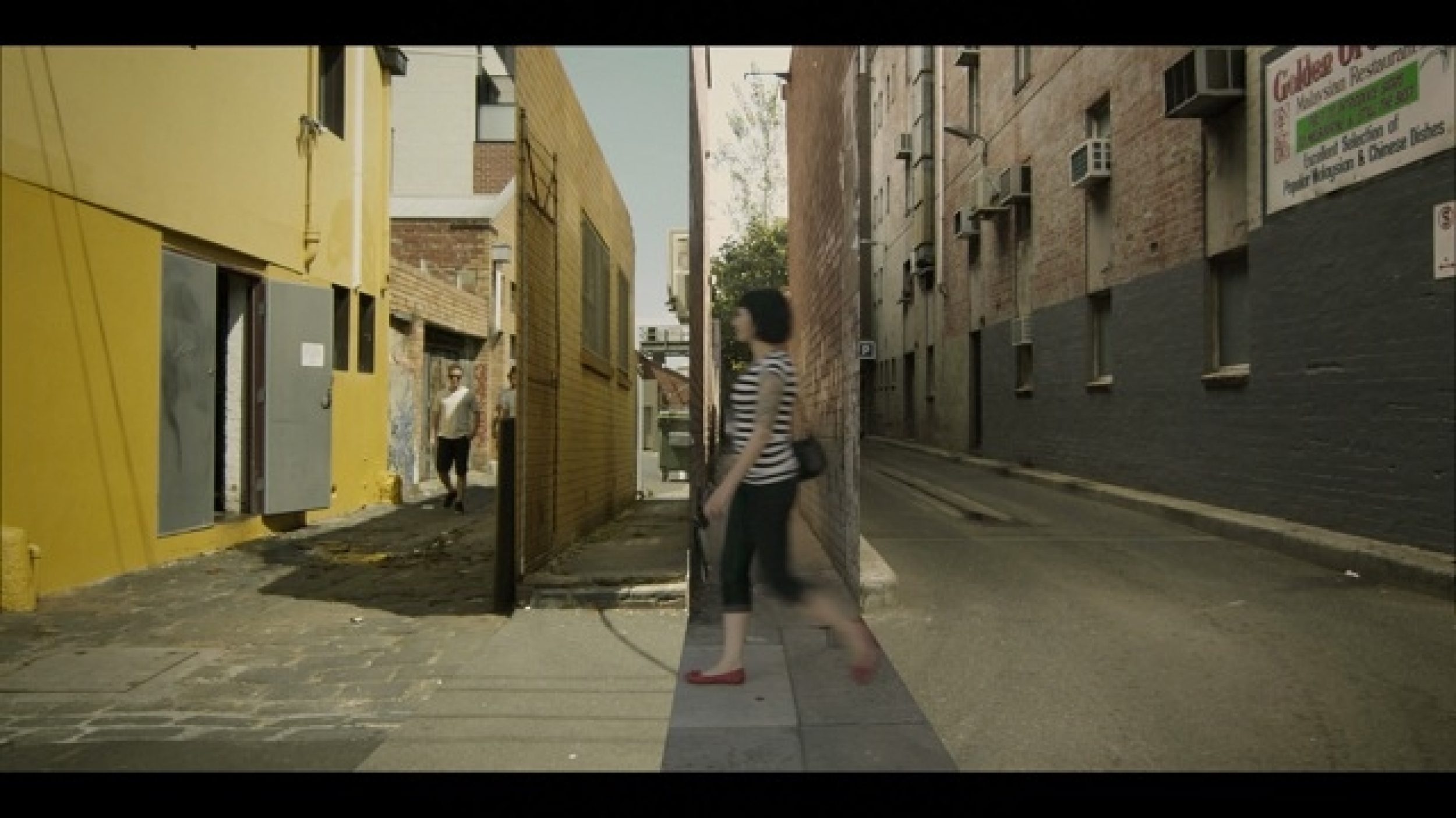 Included in the exhibition are video stills of work by Angelica Mesiti (Citizens Band, 2012) and Daniel Crooks (A Garden of Parallel Paths, 2012) reproduced as wallpaper.