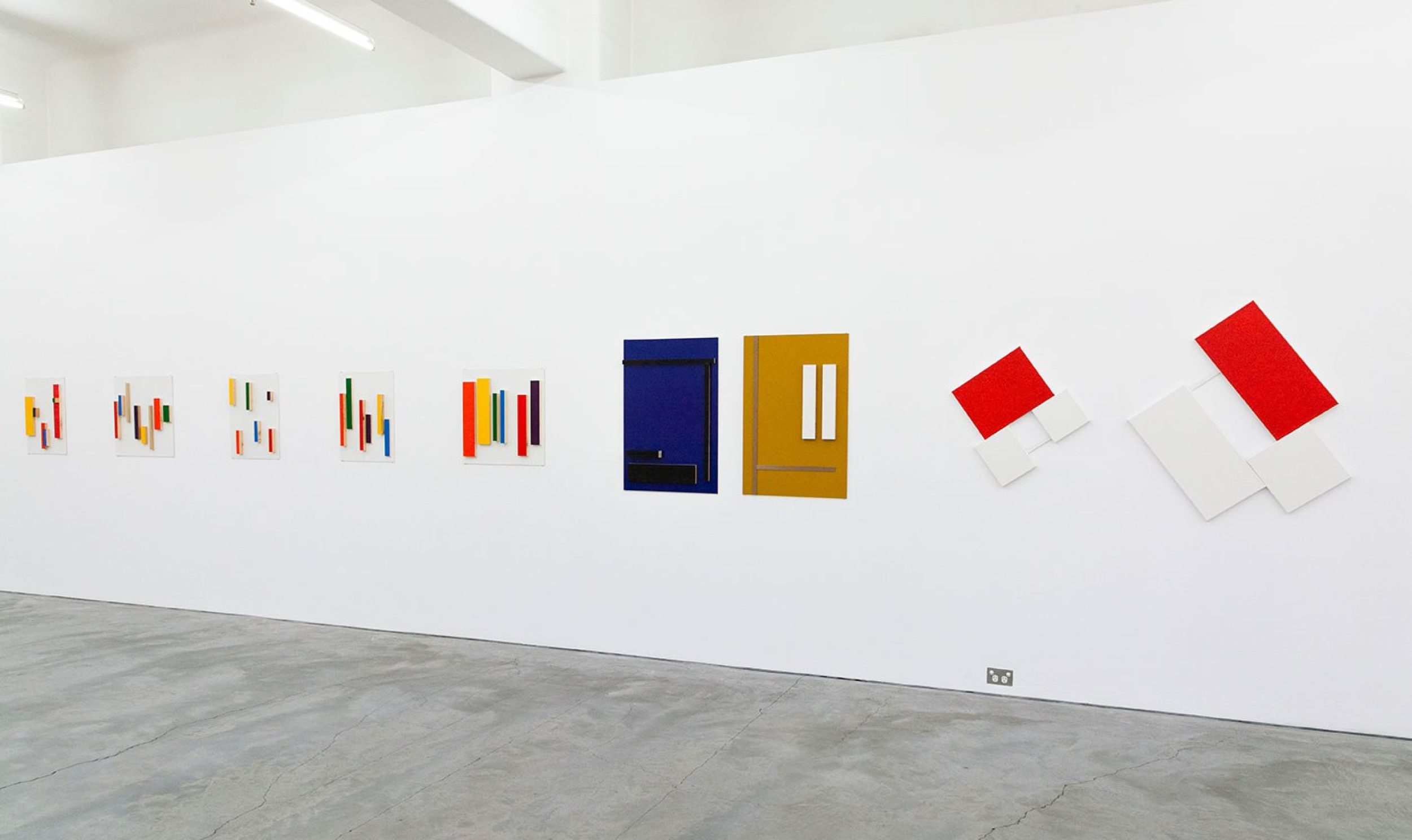 wool and MDF on linen; foam and plywood on enamel on canvas