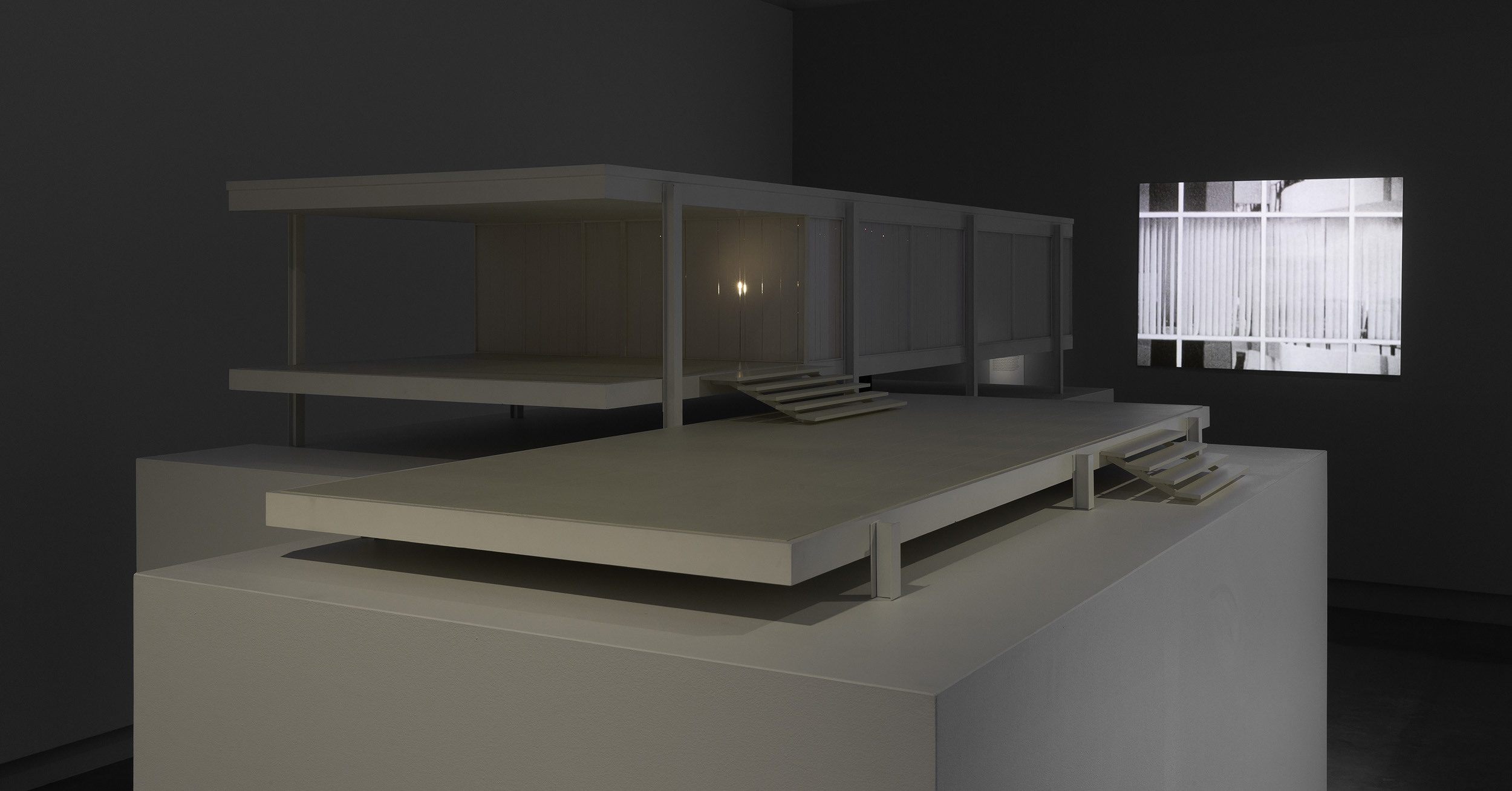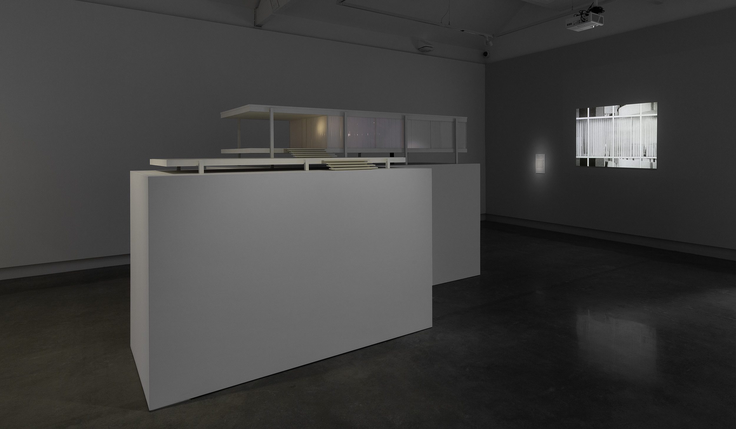 Installation view of nightshifts, Buxton Contemporary, the University of Melbourne, 2023. Featuring Laresa Kosloff, Stock Exchange 1998 and Callum Morton, International Style 1999.Michael Buxton Collection, the University of Melbourne Art Collection. Courtesy of Anna Schwartz Gallery. Photography by Christian Capurro.