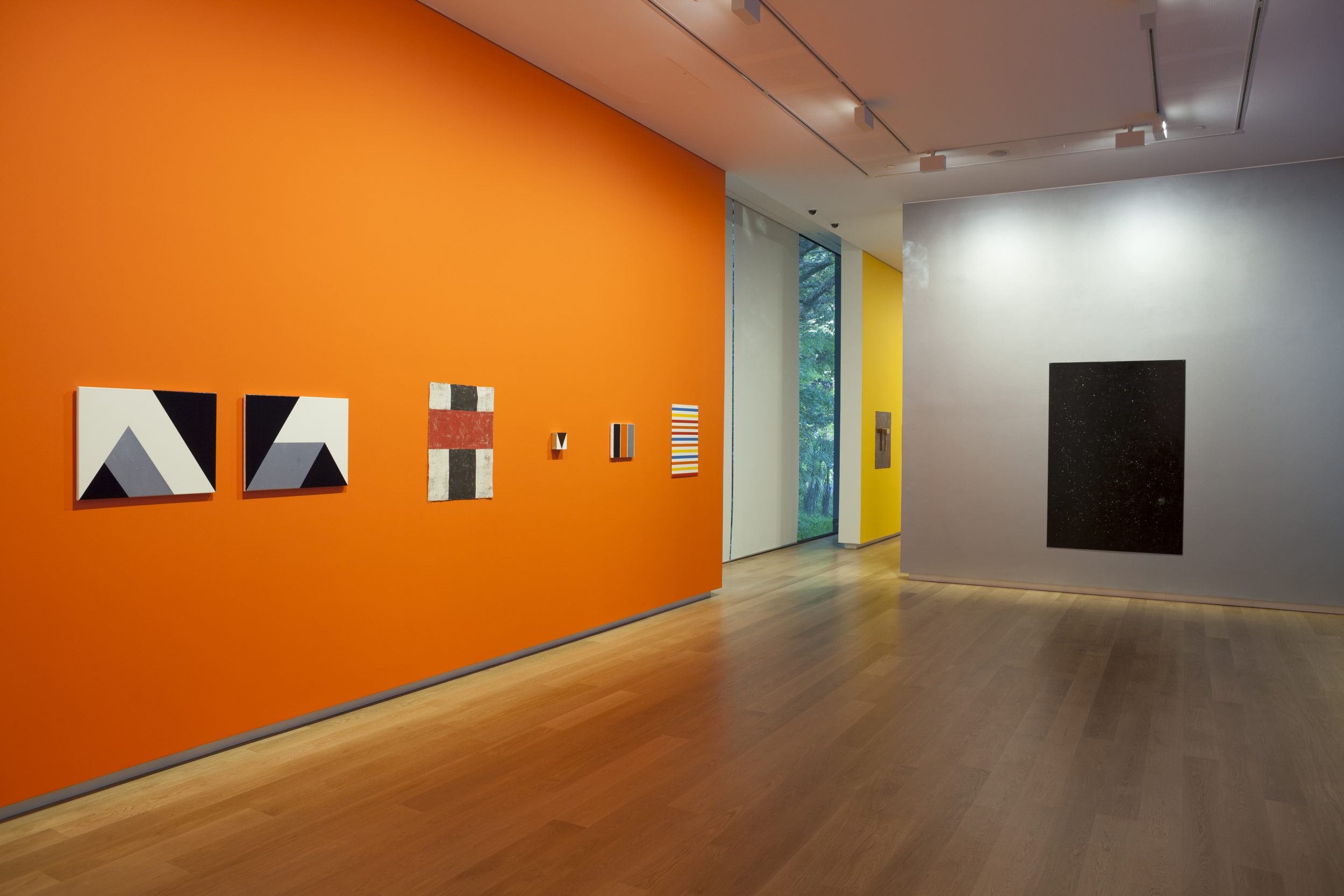 John made his biggest-ever orange monochrome painting and installed it on the long wall. Opposite he arranged a selection of works from his EPW (Experimental Painting Workshop) and added two plywood trestle tables holding paintings. It was a Gesamkunstwerk – sustained, stable and endless.